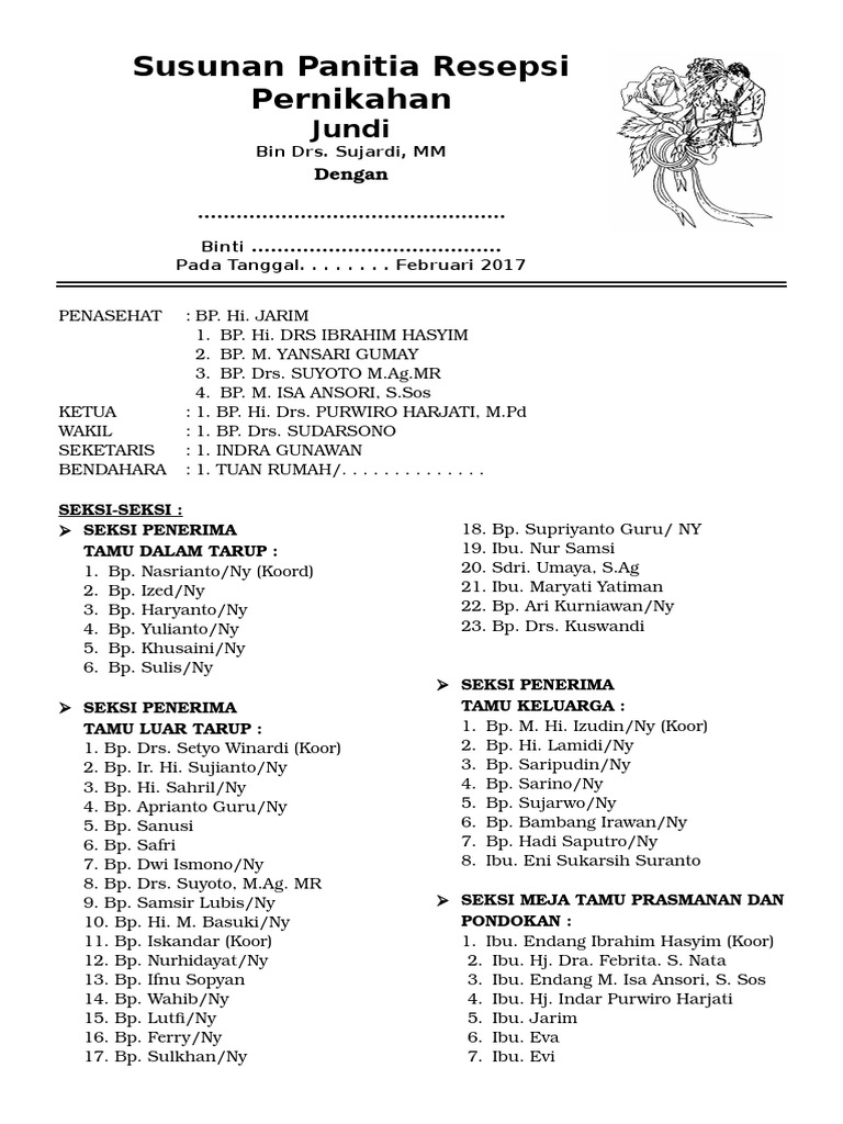 / Susunan Panitia Pernikahan - Susunan Panitia Pernikahan / Bagian ini tidak boleh dilakukan secara sembarangan karena setiap karakter dalam jumlah surat rasa.